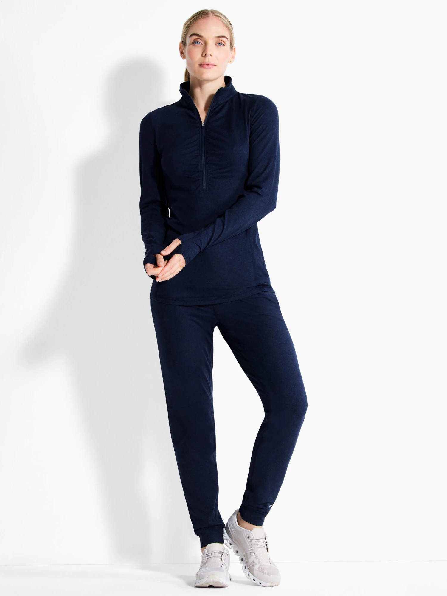 - The Girlfriend Jogger: Relaxed at thigh with a tapered leg and a cuffed hem