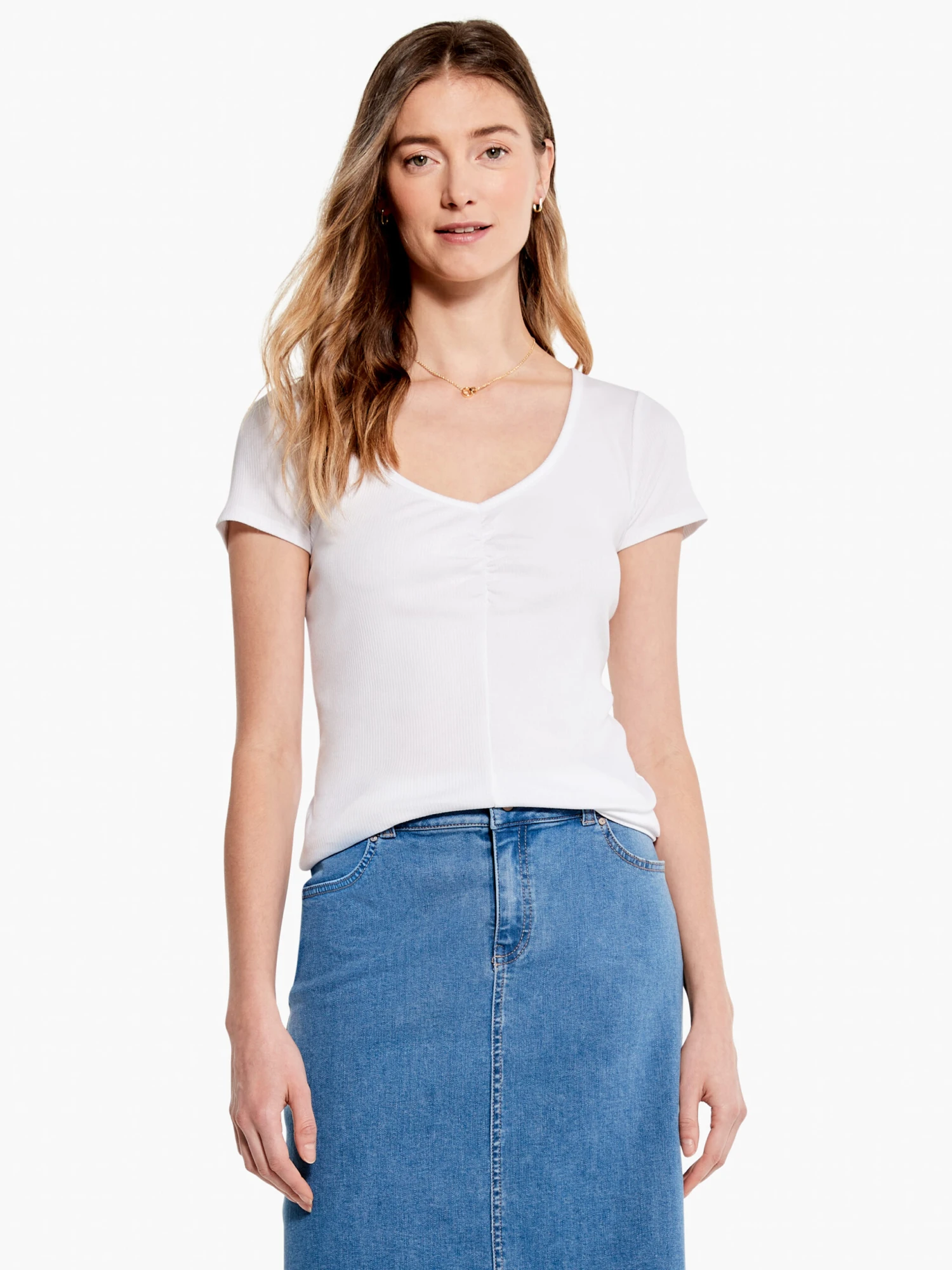 Drapey Rib Scrunch Tee PAPER WHITE
