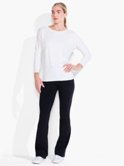 Mid rise flare crop in super soft, lofty denim. Flare leg with raw cut and released hem detailing. Seaming detail along sides adds unique aesthetic.
