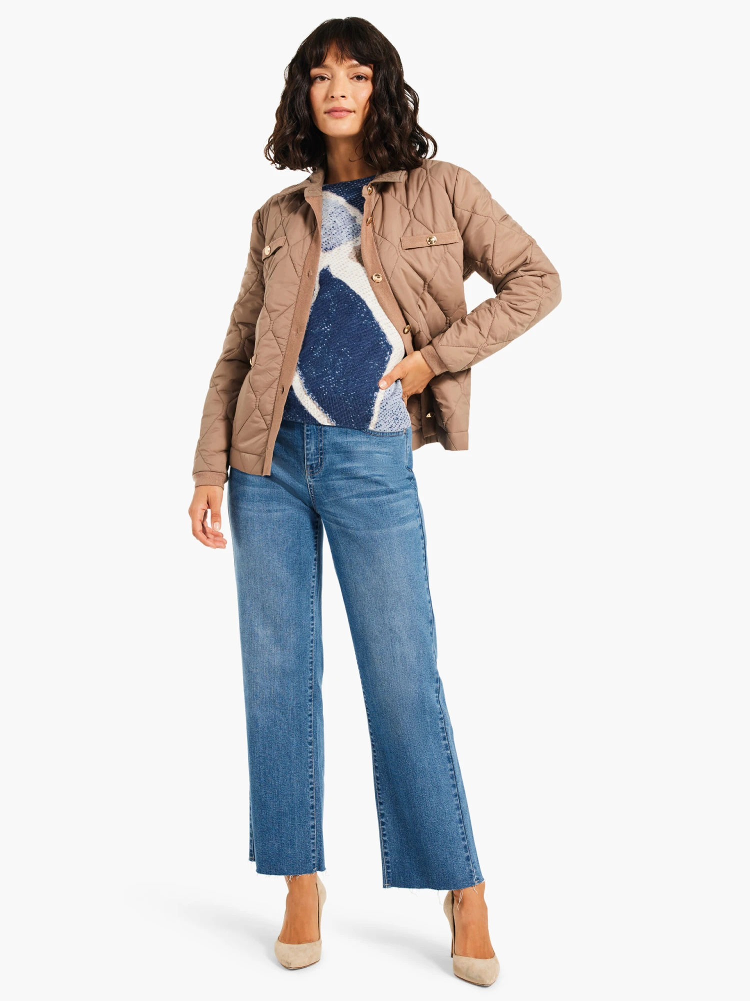 Our bestselling Femme Sleeve Silhouette has gone to print. Printed Tiles features a zoomed in version of one of our favorite, most versatile prints: wear it with denim, cream, black, indigo and just about anything else. The silo is an easy pullover with a pleat detail at the top of the sleeve and a generous cuff to add even more shape. Mindfully Made with “no waste” knitwear.
