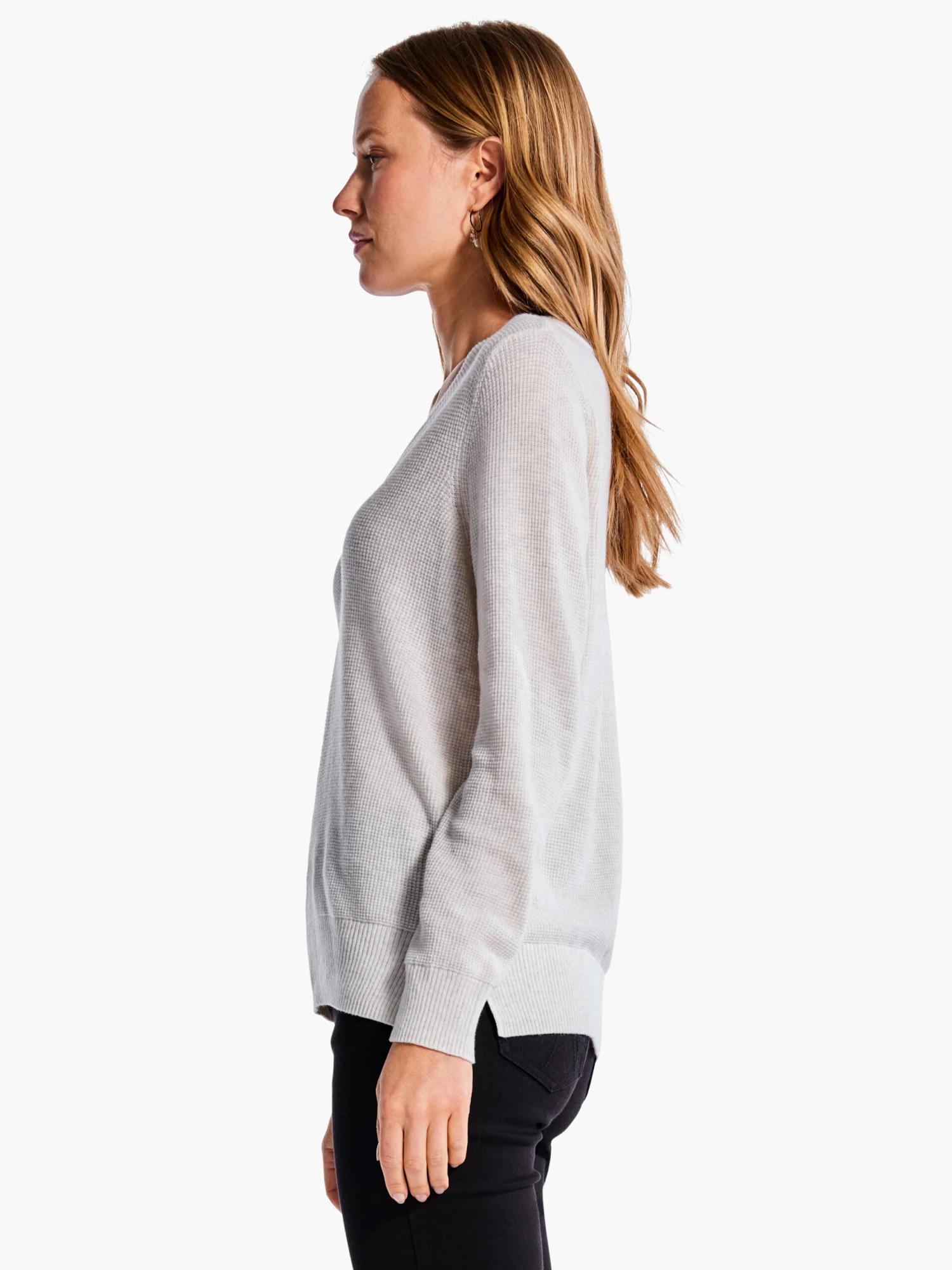 We started with our super-soft, super drapey Zephyr yarn, then injected some extra texture to give your everyday outfitting a new feel. Our Waffle Stitching adds some extra texture (without feeling thermal) to this essential layering (or not!) V-neck sweater. We took care to keep the V-shape unblocky and feminine. Features ribbing with a side slit and extra detailing along the collar.